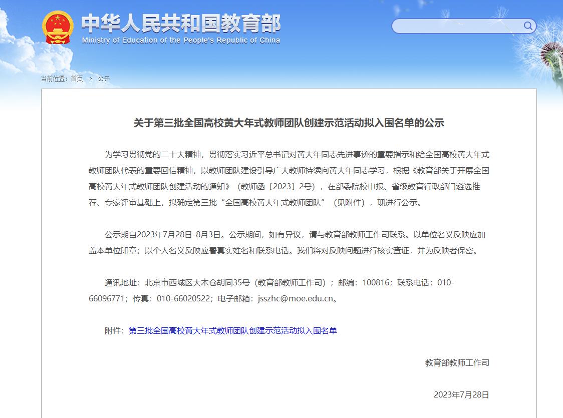 7月28日,教育部公布了《关于第三批全国高校黄大年式教师团队创建示范活动拟入围名单的公示》,我校畜牧兽医教师团队入选第三批全国高校黄大年式教师团队;陕西省教育厅发布了《关于公布第二批陕西省高校黄大年式教师团队的通知》,我校现代农业技术教师团队入选第二批陕西省黄大年式教师团队。