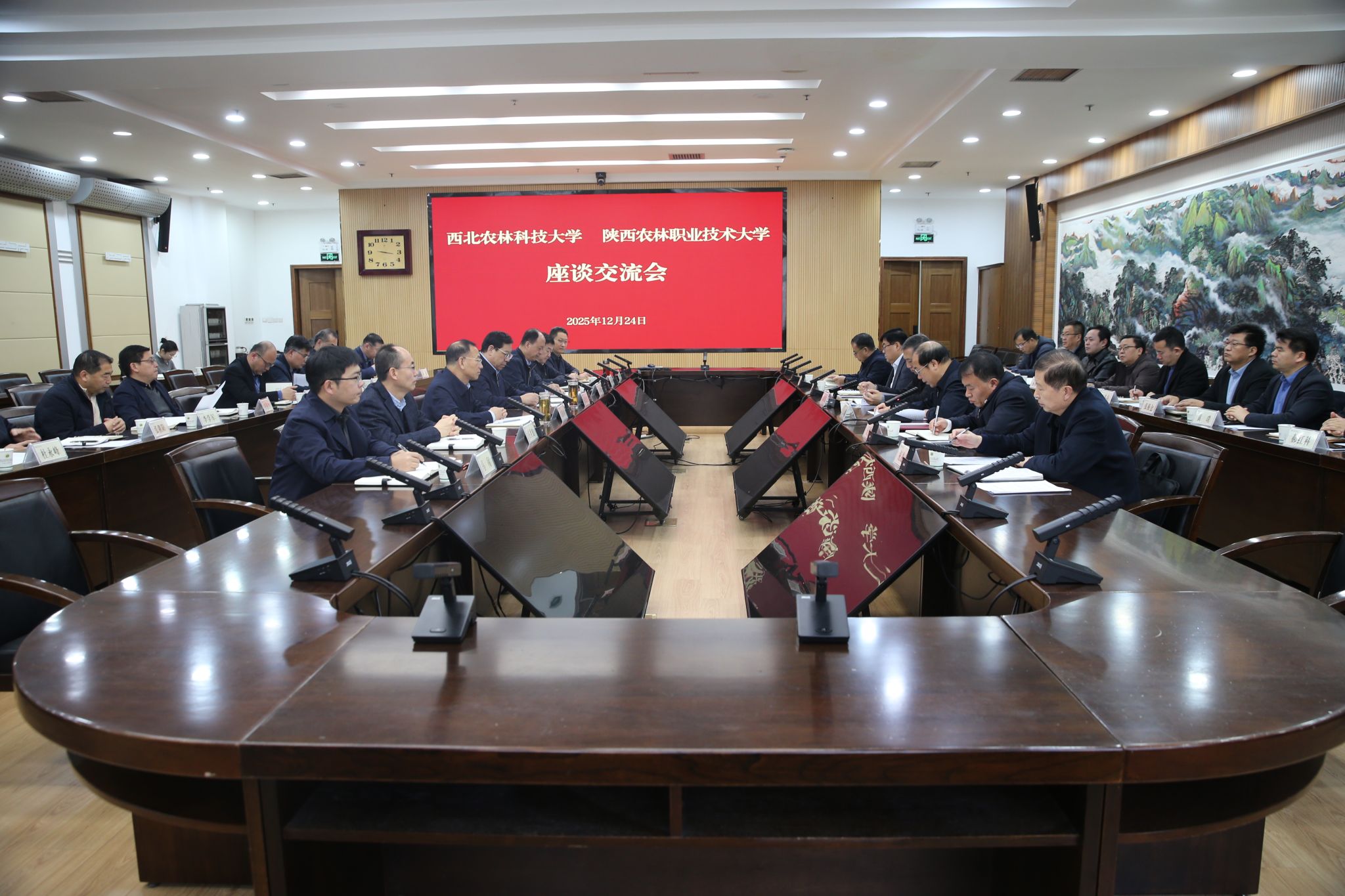 12月23日,党委书记韩明军,校长仲伟周一行赴西北农林科技大学交流座谈。西北农林科技大学党委书记黄思光出席座谈会,常务副校长韦革宏主持会议。学校党委副书记刘瑞明、王勇胜,党委副书记、纪委书记、监察专员康强,副校长祝战斌,西北农林科技大学党委副书记、纪委书记、监察专员陈红,党委副书记闫祖书,副校长房玉林,党委副书记庄世宏,副校长孙马、马闯等领导班子成员参加座谈会。