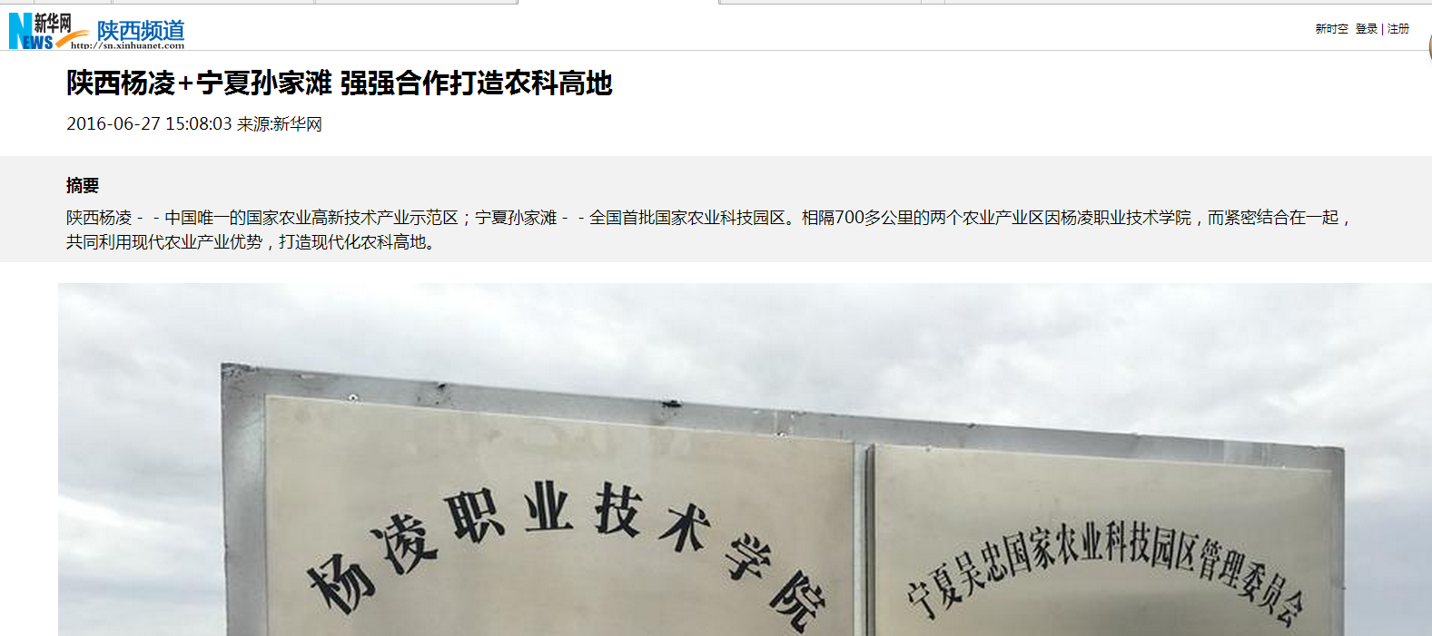 陕西杨凌--中国唯一的国家农业高新技术产业示范区;宁夏孙家滩--全国首批国家农业科技园区。相隔700多公里的两个农业产业区因杨凌职业技术学院,而紧密结合在一起,共同利用现代农业产业优势,打造现代化农科高地。