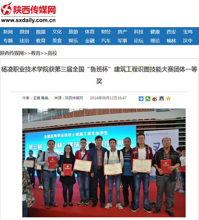 【陕西传媒网】杨凌职业技术学院获第三届全国“鲁班杯”建筑工程识图技能大赛团体一等奖