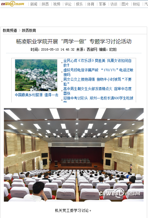 【西部网】杨凌职业学院开展“两学一做”专题学习讨论活动