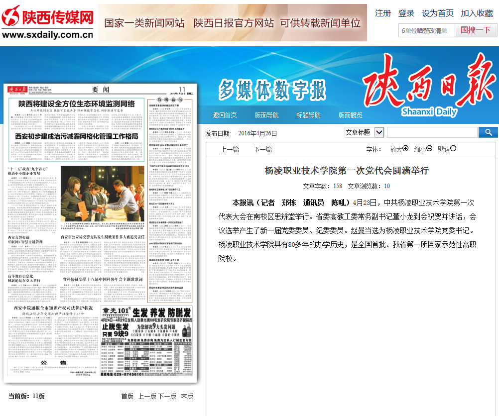 【陕西日报】杨凌职院第一次党代会圆满举行