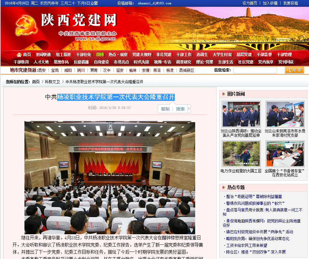 【陕西日报】杨凌职院第一次党代会圆满举行