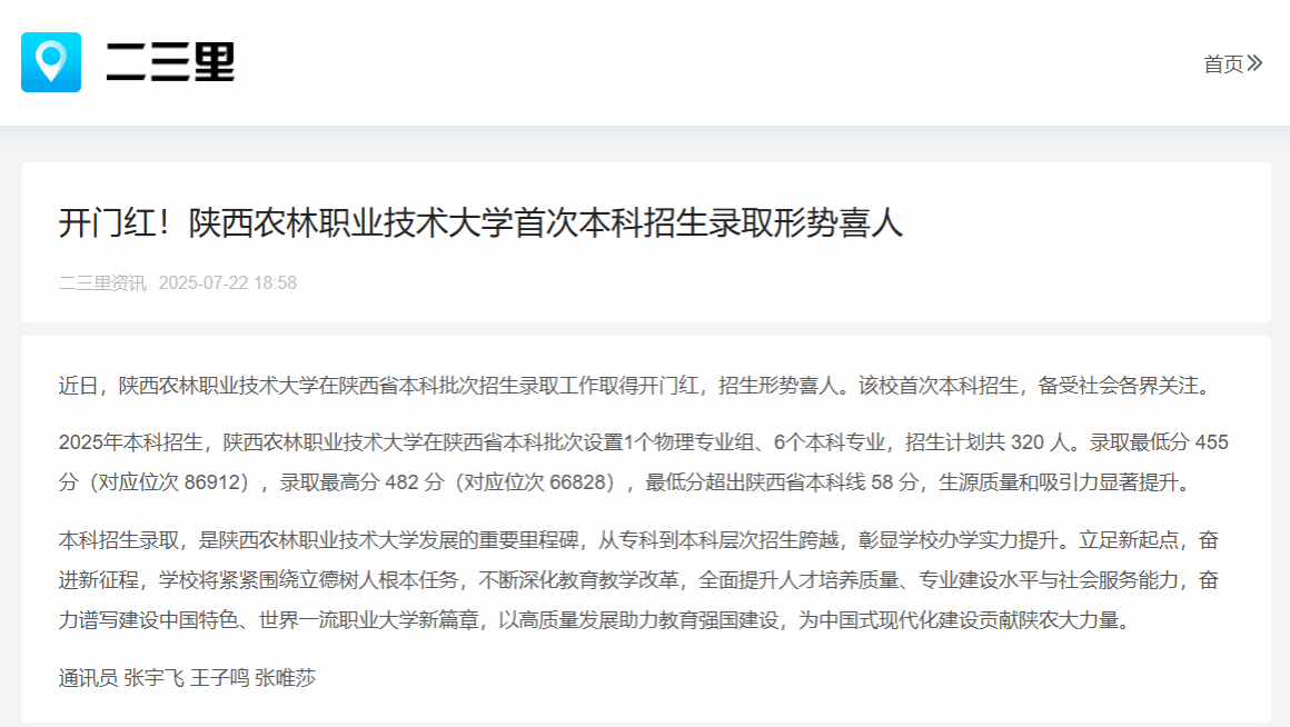 近日,陕西农林职业技术大学在陕西省本科批次招生录取工作取得开门红,招生形势喜人。该校首次本科招生,备受社会各界关注。