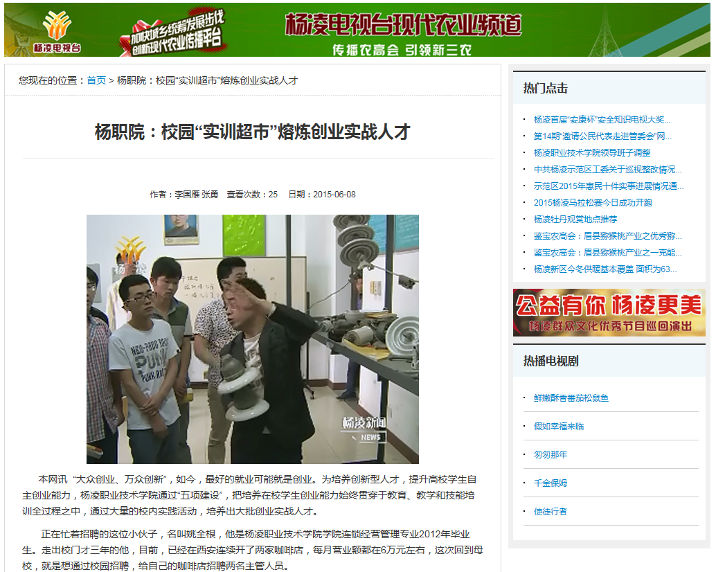 日,杨凌电视台以“杨职院:校园‘实训超市’熔炼创业实战人才”为题,对我院学生创业工作进行了宣传报道