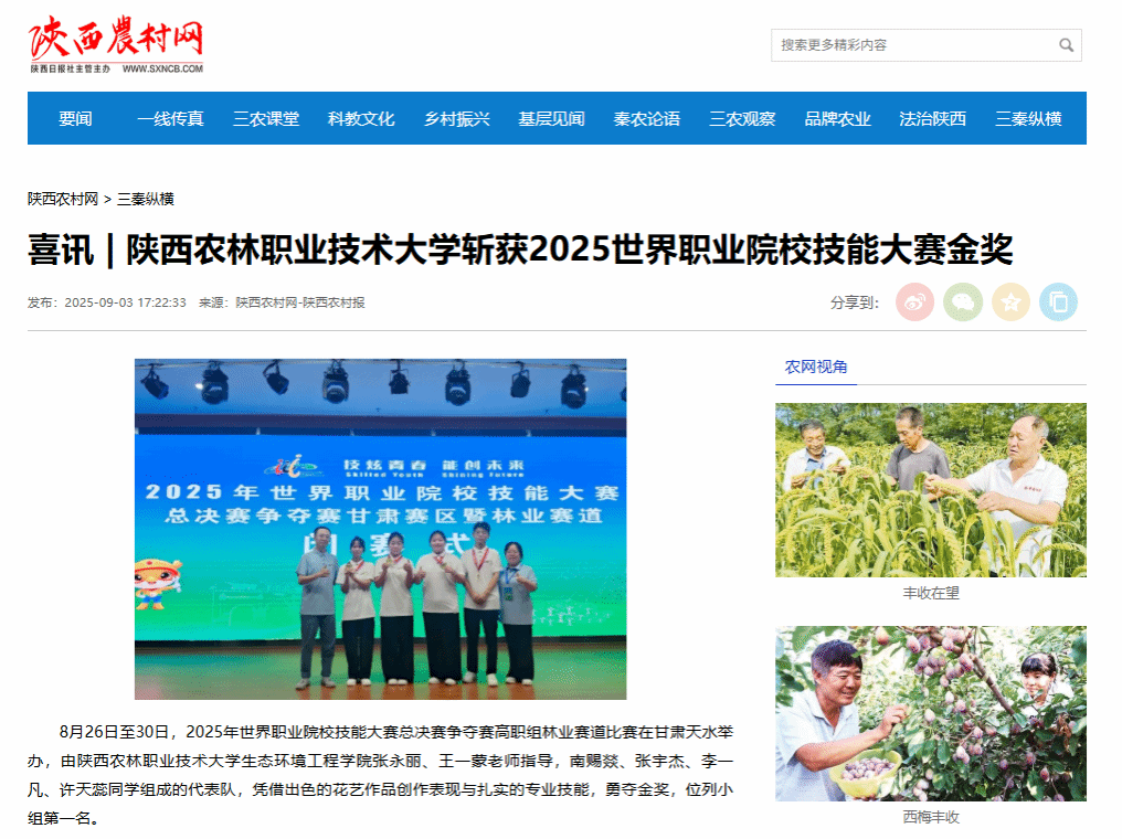 陕西农林职业技术大学始终坚持以赛促学、以赛促教、以赛促改,将技能竞赛作为深化教育教学改革、提升人才培养质量的重要抓手,为青年学子搭建起理论与实践、课堂与社会、育人与育才的桥梁,让学生在竞技中积蓄动能、找到职业方向。