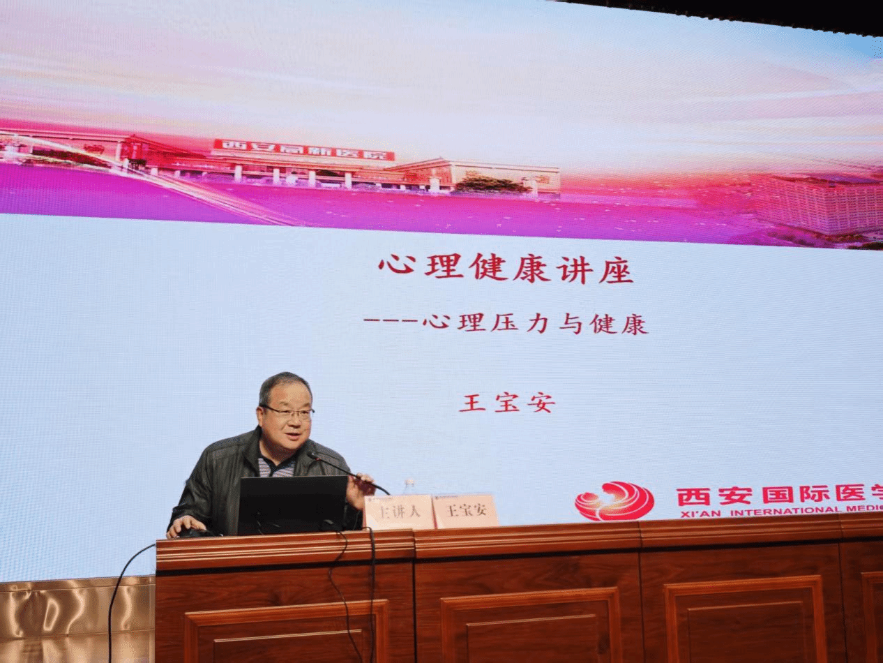 西安高新医院康复医院副院长王宝安作首场专题报告,他以学生心理健康与压力应对为题,结合丰富的案例,深入浅出地讲述了心理压力与健康的关系,生动阐释了焦虑情绪、抑郁情绪、睡眠障碍等常见的心理问题,帮助学生了解了心理压力的来源和表现形式,从生理层面、心理层面、建立支持系统等方面学会应对、缓解和释放压力,促进身心健康。