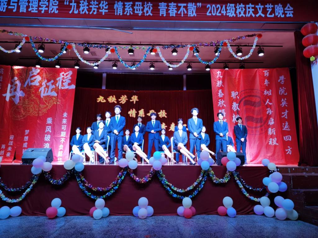 11月17日晚,旅游与管理学院举办“九秩芳华 情系母校 青春不散”主题校庆文艺晚会。旅游与管理学院、文理学院负责人,旅游与管理学院教师代表、辅导员、班主任和2024级全体新生共计300余人参加。