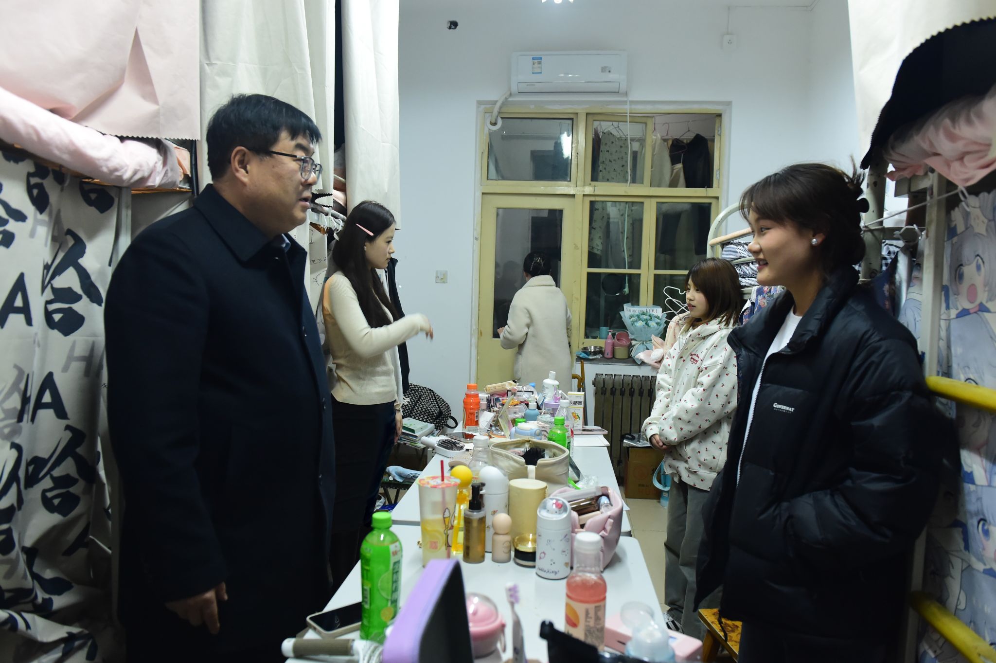 晚上,校领导分别带队深入三校区学生公寓看望返校学生与学生们亲切交谈,询问他们的假期生活和返校后的适应情况,了解他们的生活情况和需求,并叮嘱他们注意安全,合理安排学习和生活以饱满的精神状态迎接新学期。