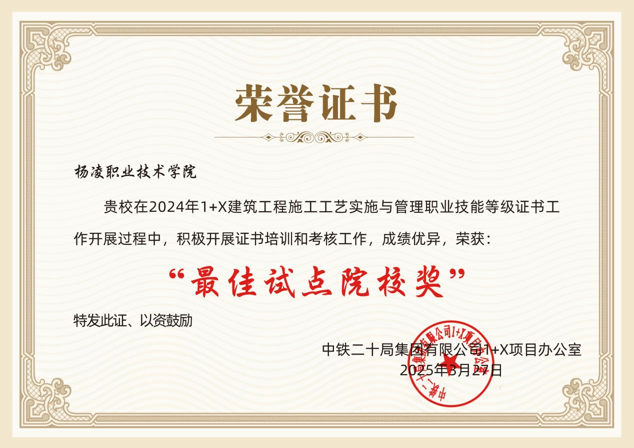 近日,1+X建筑工程施工工艺实施与管理职业技能等级证书2024年度总结表彰会在线上召开,会议公布了优秀试点院校名单,学校获2024年度最佳试点院校奖和最佳省级考务管理中心奖。