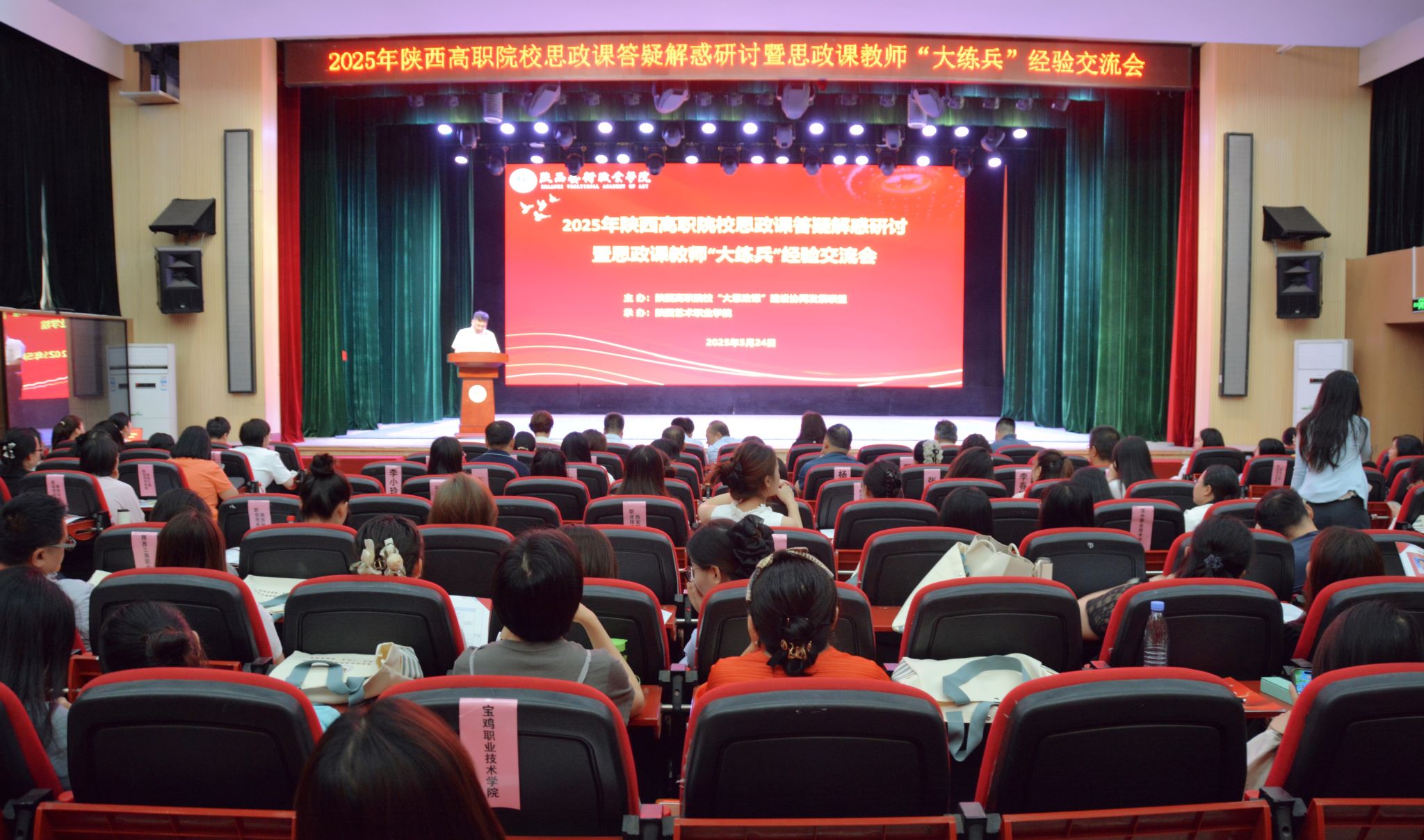 5月24日,由陕西高职院校“大思政课”建设协同发展联盟主办的2025年陕西高职院校思政课答疑解惑研讨暨思政课教师“大练兵”经验交流会在陕西艺术职业学院成功举办。联盟副理事长、学校党委副书记刘瑞明出席会议并致辞。马克思主义学院负责人及教研室主任、教师代表参加会议。