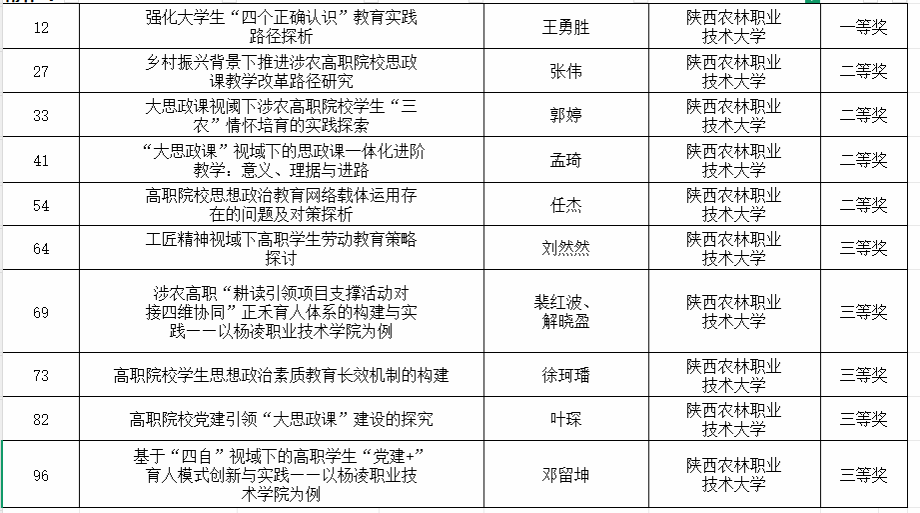 11月12日,陕西省高等学校思想政治教育研究会(简称“省高校政研会”)公布了2022年至2025年度思想政治教育优秀研究论文评选结果,我校10篇论文获奖。