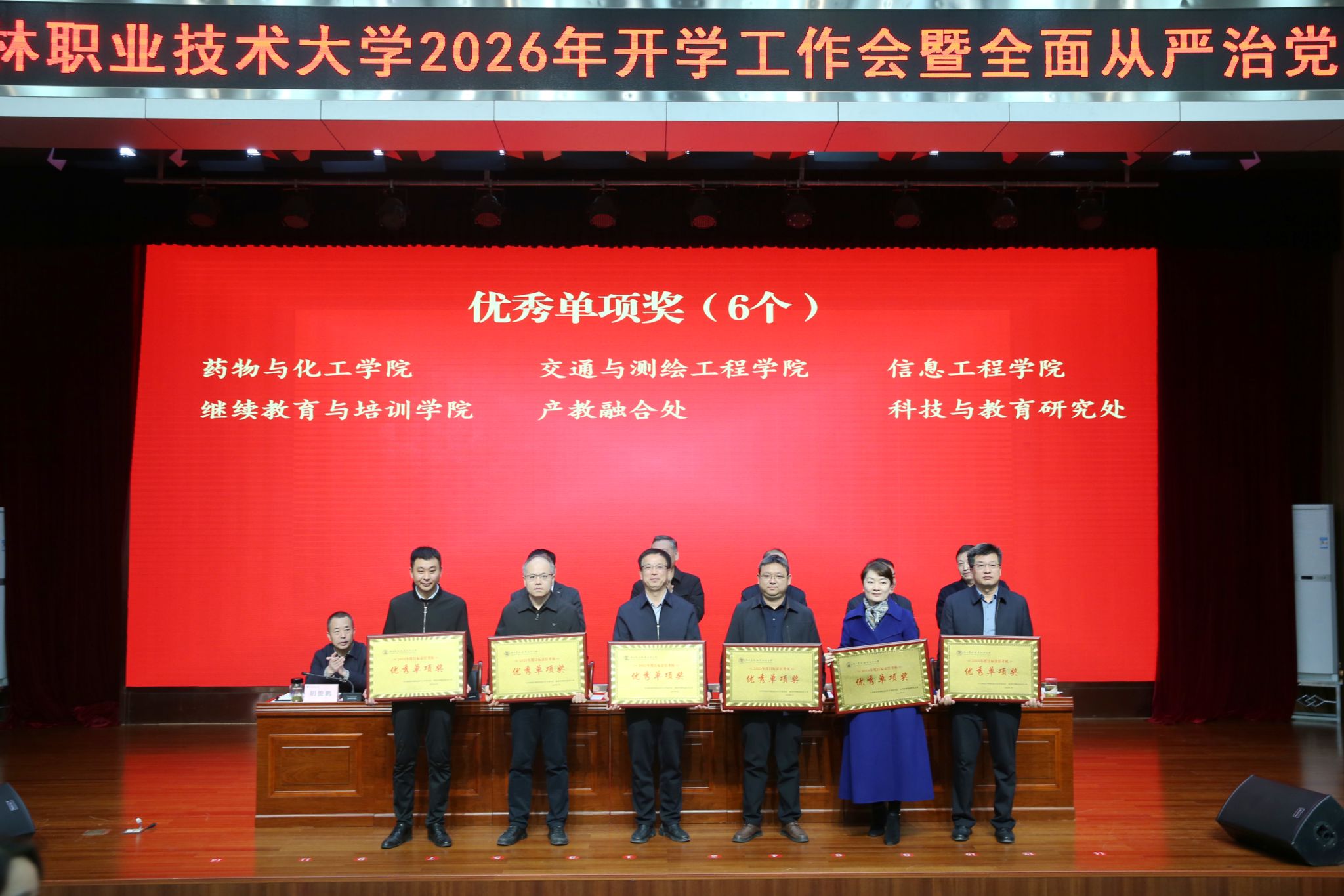 会上,党委副书记刘瑞明宣读《关于表彰2025年度考核优秀单位和个人的通报》。学校领导为考核优秀单位颁发奖牌、为优秀个人代表颁发荣誉证书。