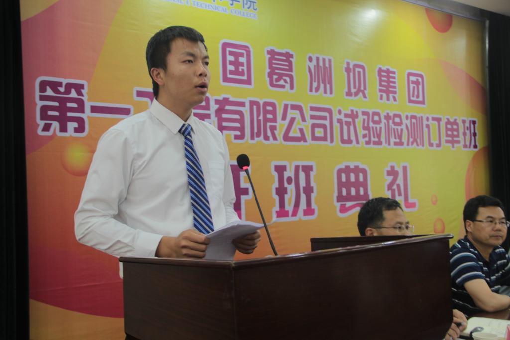 张永良首先对葛洲坝集团第一工程有限公司多年来与杨凌职业技术学院的合作表示感谢,他说,杨凌职业技术学院与葛洲坝集团有长期合作的基础,中国葛洲坝集团第一工程有限公司试验检测订单班的开设体现了教育与产业、学校与企业、专业与职业、教学过程与生产过程的有机对接,是校企合作中结出的硕果。他希望订单班的学生一要努力学习,珍惜这次难得机遇;二要树立竞争意识和团队合作意识;三要严格遵守学院和公司的各项规章制度。同时希望订单班任课教师大胆开展教学改革,不断提升订单班人才培养质量。