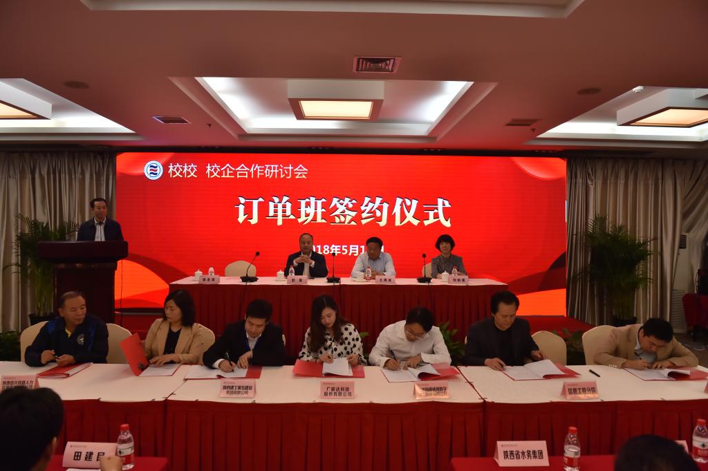 5月11日,在我院举办的“校校 校企合作研讨会”上,30多家企业与我院签订了校企合作订单培训班协议。学院党委书记赵曼,党委副书记、院长王周锁出席签约仪式。