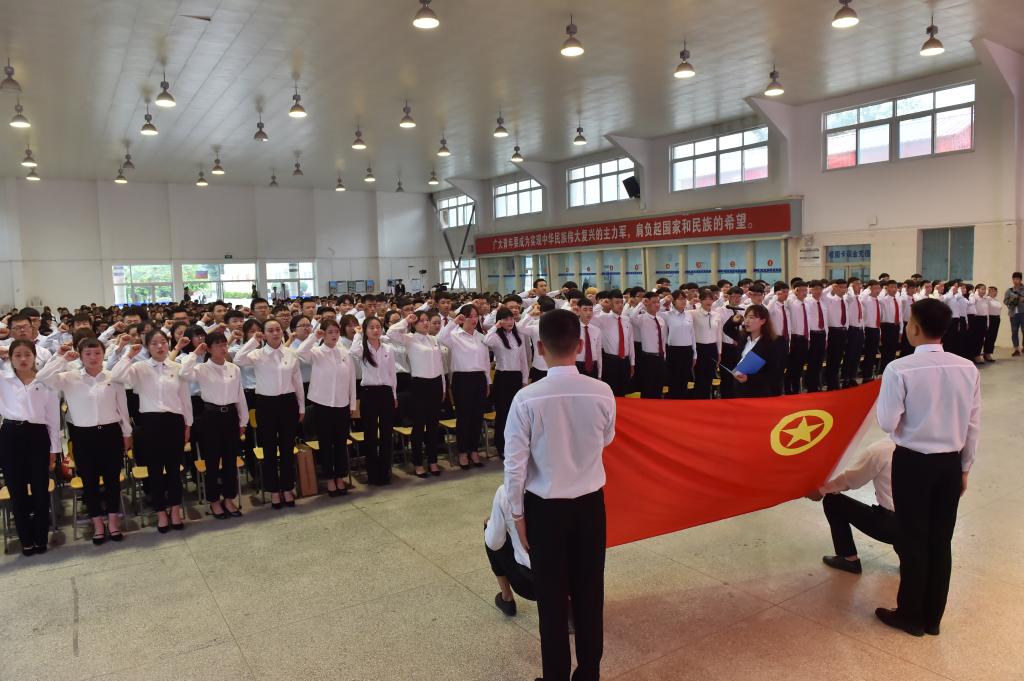 在雄壮的国歌声中大会开始,170名新团员面对团旗庄严宣誓。大会对一年来的共青团工作进行了全面的总结,宣读了《共青团杨凌职业技术学院委员会关于2017-2018学年度先进集体及先进个人的表彰决定》。先进集体代表生态环境工程分院团总支书记作了大会发言。