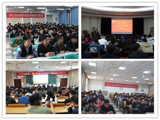 大学精神集中反映了学院的历史传统、办学宗旨和时代新义,集中体现了师生共同遵守的基本行为准则与道德规范,集中展示了师生良好的精神风貌、文化修养和优良品格。学习研讨活动的开展,使得广大师生对校风校训与学院精神的内容有了系统、深入的认识,为进一步宣传学习学院精神、推进学院各项事业发展打下了牢固的思想基础。
