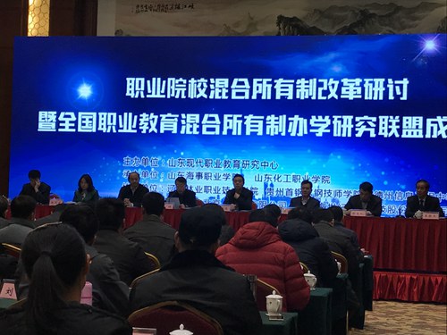 近日,全国职业院校混合所有制改革研讨暨全国职业教育混合所有制办学研究联盟成立会议在山东潍坊召开,我院质量监控办公室(职教研究所)与来自全国21个省、市、自治区、直辖市的103家教育行政单位、院校、企业,共235名专家学者一起参加会议。会上,我院当选为联盟理事单位。