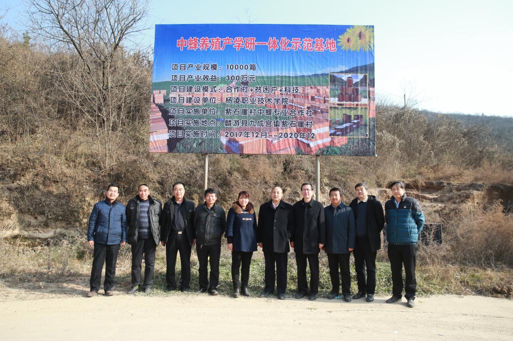 据了解,我院在麟游县九成宫镇紫石崖村实施的产学研一体化示范基地扶贫项目包括中蜂养殖的主要养殖技术和核桃丰产栽培技术的推广和电商平台建设,实施年限从今年12月10日至2020 年12月31日。紫石崖村共有7个村民小组,268户926人,其中贫困户73 户,贫困人口189人。项目完成后,紫石崖村现有中蜂7000箱将达到10000箱,中蜂总产值达300万元,人均达到3240元。形成核桃丰产园1000亩核桃总产值达100万元,人均达到1080元。并使全村留守人员除老弱病残幼外均掌握1-2门实用技术。