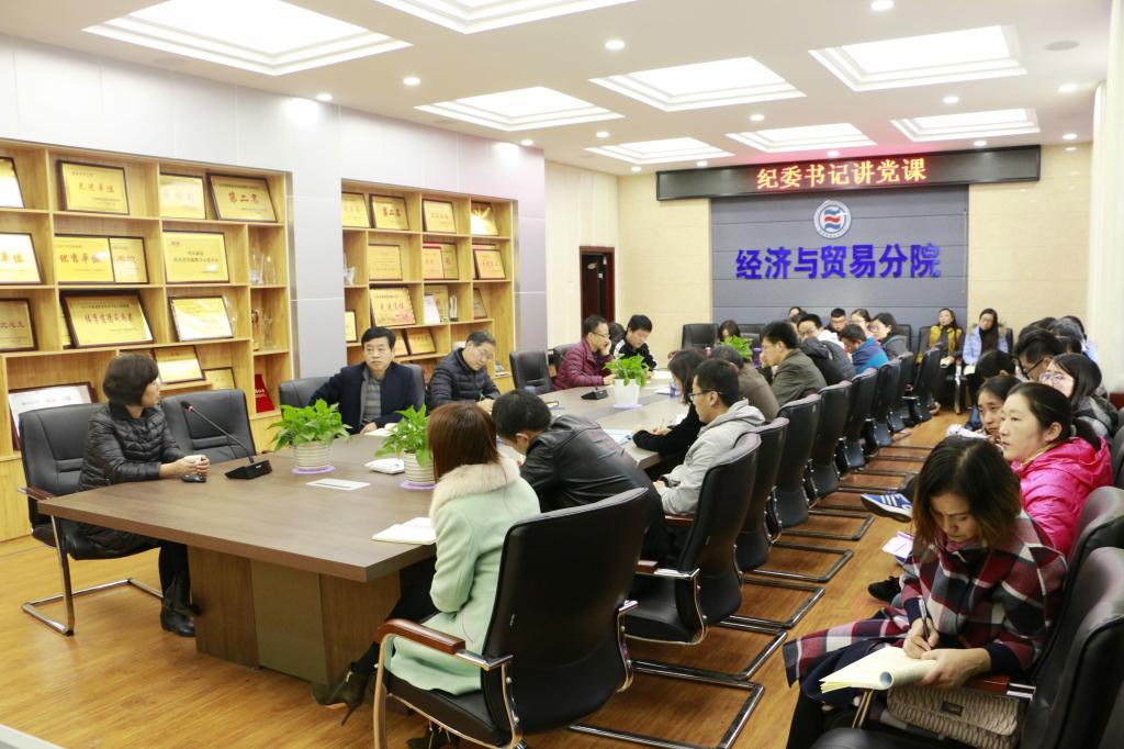 11月20日,学院纪委书记刘粉莲到联系的经济与贸易分院,为该分院全体教职工作题为“对社会主义办学方向的认识”专题教育党课。