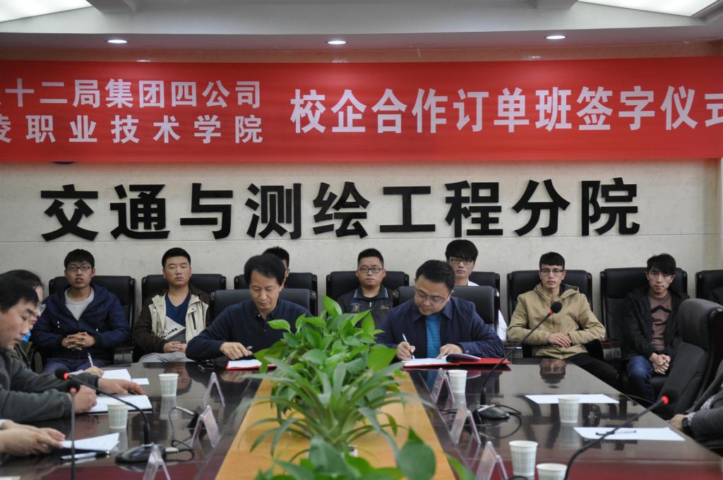 10月18日下午,交通与测绘工程分院与中铁十二局第四工程有限公司签订校企合作订单班协议。交通与测绘工程分院领导班子成员、教务处相关负责人和中铁十二局第四工程有限公司一行5人参加了签约仪式。