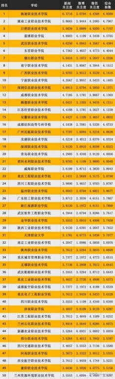 全国高职院校媒体关注度排行榜