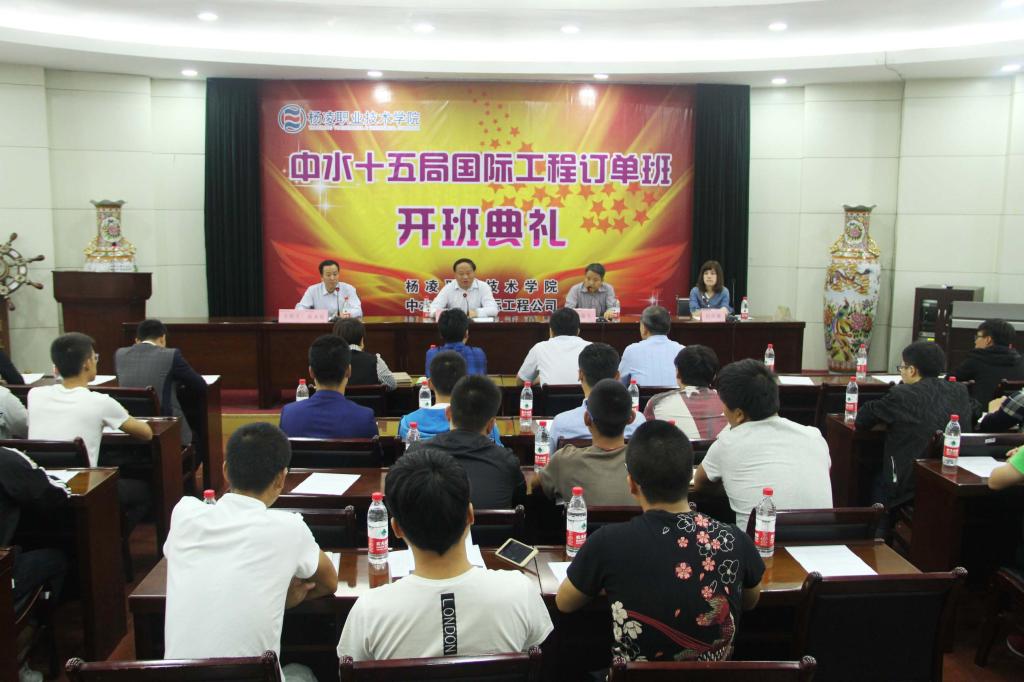 王周锁在讲话中,首先对中水十五局多年与杨凌职业技术学院的合作表示感谢,并分析了当前国际班的发展优势,对订单班的学生提出三点要求,一要认清形势,把握机遇,珍惜此次得之不易的机会;二要学会学习,多投入一些时间与精力,熟练掌握本学年国际订单班开设的课程、知识、能力;三是订单班的同学来自不同专业,平时要互相帮助,共同学习,共同进步。他希望,教师们要深化改革,实施精准授课,强化对学生知识、能力、素质的培养,共同让水利分院首个国际订单班结出胜利之果。