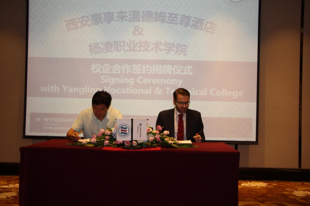 728日,旅游与管理分院与西安温德姆酒店校企合作签约暨温德姆酒店管理学院揭牌仪式在西安举行,标志着我院与温德姆酒店管理集团的合作关系正式建立。副院长王晓地、党委委员拜存有及旅管分院全体教师、实习生参加了仪式。