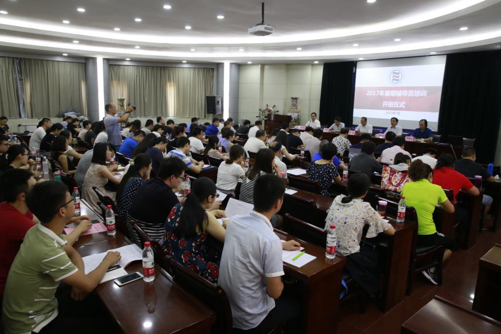 7月19日,我院2017年暑期辅导员培训开班仪式在水韵楼二楼报告厅举办。党委书记赵曼出席培训班开班仪式并作首场专题报告。人事处处长拜存有、党委学工部,学生处、团委、书画艺术中心主要负责人,分院党总支书记、学工办主任和全体辅导员等100余人参加了开班仪式。