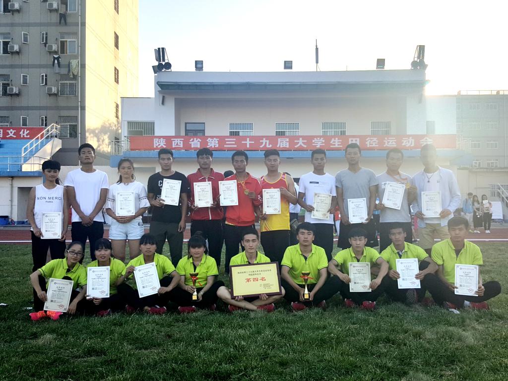 5月25日至27日,由陕西省教育厅、陕西省学生体协主办,西安体育学院承办的2017年第39届陕西省大学生田径运动会于在西安体育学院隆重举行,共有82所普通高校1890余名运动员参加了比赛。我院代表队获得丙组(高职组)男子团体总分第三名、女子团体总分第五名,男女团体总分第四名。我院选手刘雨豪同学以 47.97米 成绩,获得男子标枪金牌,并打破省记录。