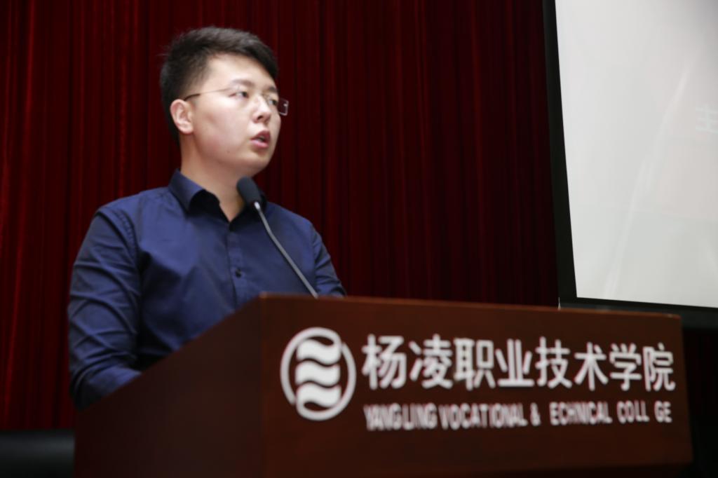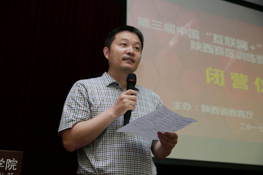 杨凌职业技术学院指导教师段成章代表本次训练营指导教师进行发言时,首先向各位领导和专家表示敬意,对全体指导教师及项目团队表示祝福,对全体工作人员表示感谢。他说,两天来各位领导和专家的指导点评、谆谆教导、总结点评,给他们很多启发和指引。他号召同学们及兄弟院校的项目组在创新创业的道路上,共同携手并进,搏击“互联网+”新时代,争做创新创业生力军。