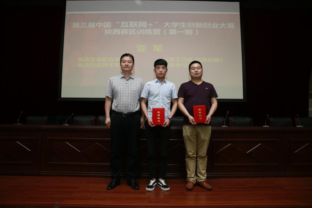 经过2天的创新创业项目辅导及演练、项目选拔、项目路演项目总结,5月24日,第三届中国“互联网+”大学生创新创业大赛陕西赛区训练营(第一期)在杨凌职业技术学院胜利闭营。全国高校创新创业投资服务联盟副理事长、企业级创业战略规划授权导师倪莉芸,杨凌职业技术学院副院长张永良,全国高校创新创业投资服务联盟理事、1617合伙人李金平等参加颁奖大会暨闭营仪式。与会领导和专家评委为项目和团队获奖者颁发了荣誉证书。