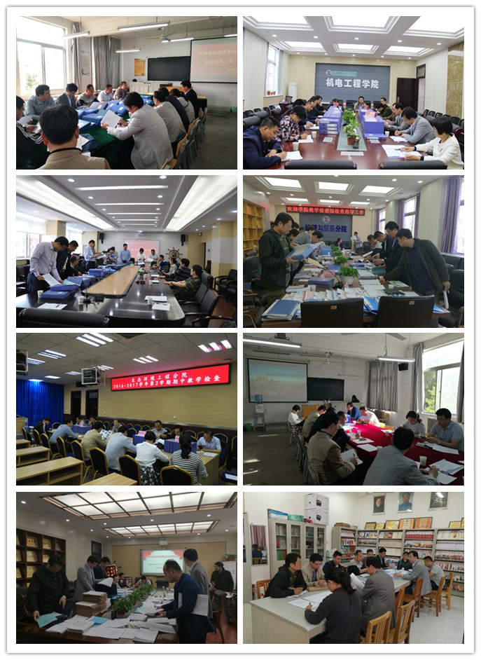 4月24日至5月10日,学院对本学期教学工作进行了中期检查。副院长张永良主持召开了教学重点工作(任务)检查布置会,对重点检查的内容、形式及时间安排作了专题部署。由教务处相关人员、各分院(部)办公室主任组成检查组,对全院14个分院(部)的教学重点工作(任务)进行了现场检查,整体情况良好,达到了“研讨、交流、学习、提高”的目的。