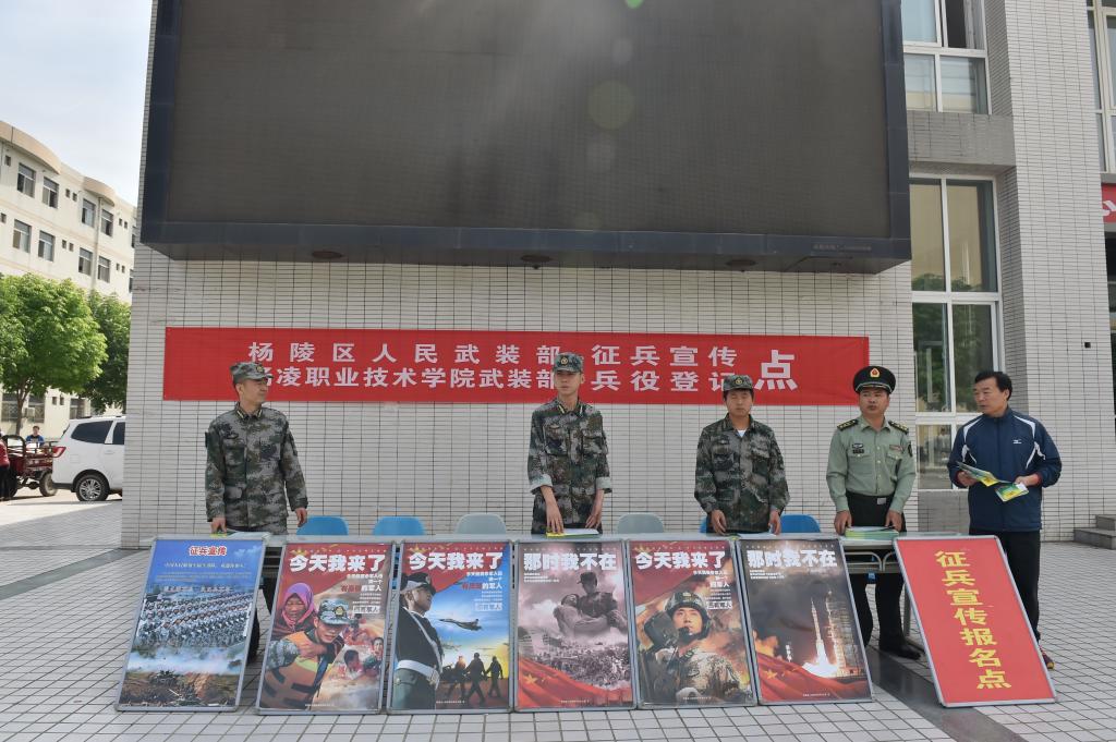 5月9日,我院人武部联合杨陵区人武部举办了国防教育和征兵宣传进校园活动。根据省军区、省教育厅要求,按照兵役法规定,目前,我院在校学生中年满18周岁男青年兵役登记率达到99.3%。