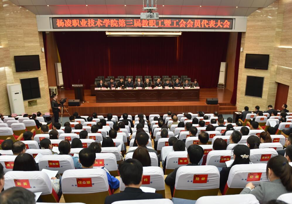 3月4日,学院第三届教职工暨工会会员代表大会在思辩堂召开。省总工会副巡视员、省教育工会主席张敏,西北农林科技大学党委副书记徐养福,省教育工会副主席陈鹏,示范区党工委管委会副巡视员孙华出席开幕式。院党委书记赵曼,党委副书记、院长王周锁,党委副书记任得元,副院长王晓地、张永良,纪委书记刘粉莲,副院长张迪出席大会。