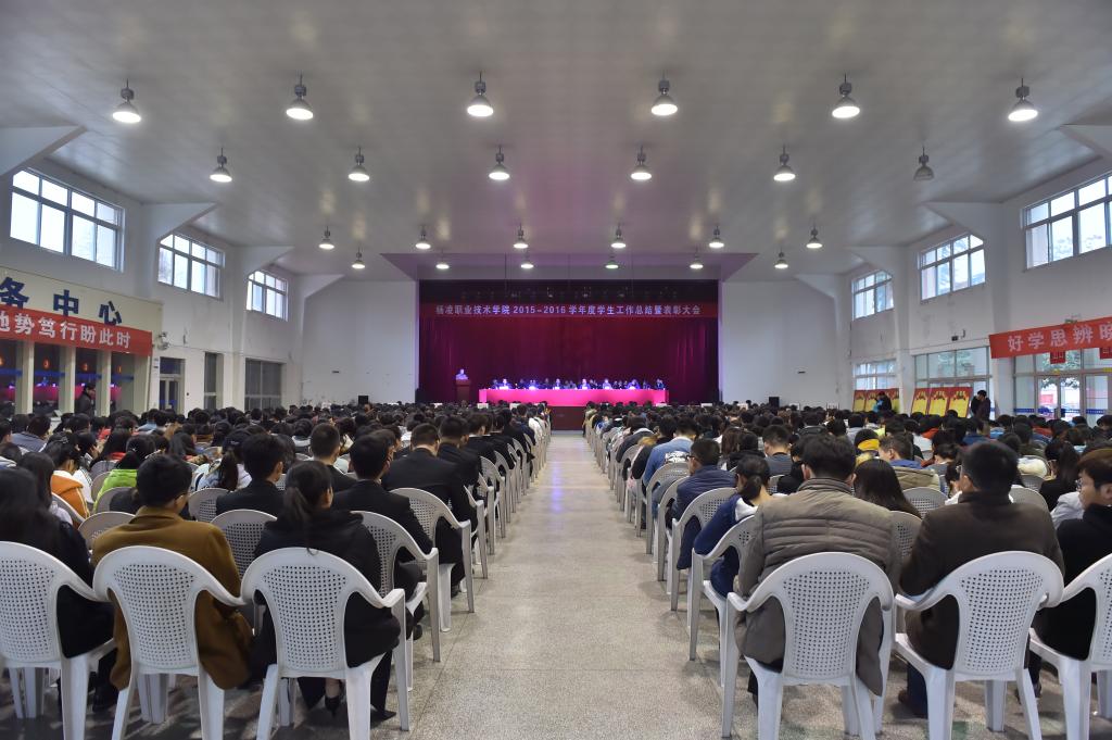 学院领导赵曼、王周锁、任得元、张永良、刘粉莲、张迪出席大会并为获奖集体和个人颁奖,院长王周锁讲话,党委副书记任得元宣读表彰决定,副院长张迪作学生工作报告,副院长张永良主持大会。各分院领导、各处室负责同志、全体辅导员、全体获奖学生、各分院学生代表共计1100多人参加了大会。