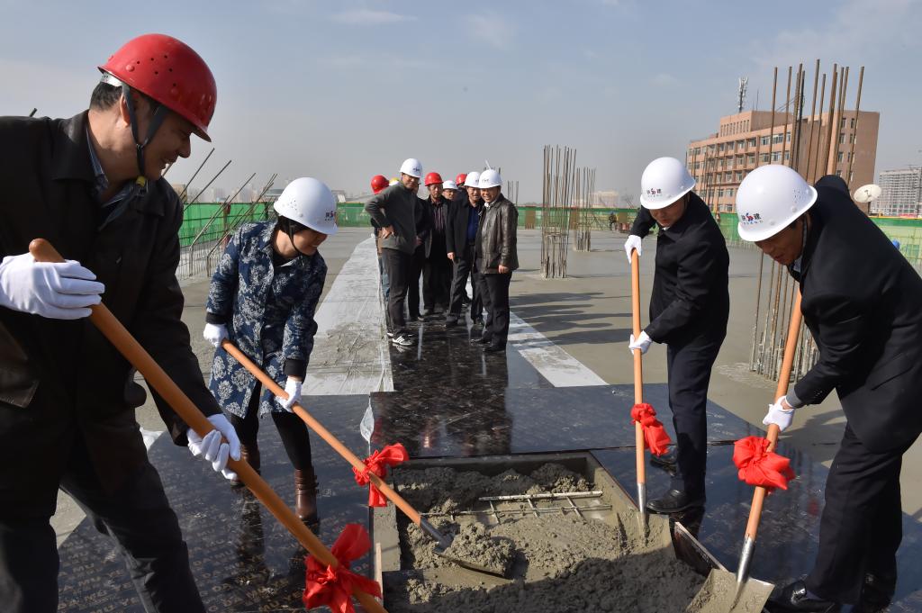 11月11日上午11点,伴随着最后一方混凝土的浇筑到位,在学院领导、监理及项目部领导的见证下,我院南校区10号学生公寓楼工程正式完成主体结构的封顶。学院党委书记赵曼,纪委书记刘粉莲,副院长张迪以及后勤基建处、纪检监察审计处、财务处、工会及相关单位负责人,陕西建工第五建设集团有限公司工会主席柴九成、集团分公司总经理刘颖、集团公司组织部部长范海、西安普迈项目管理有限公司总经理赵延贤等共同出席了封顶仪式。