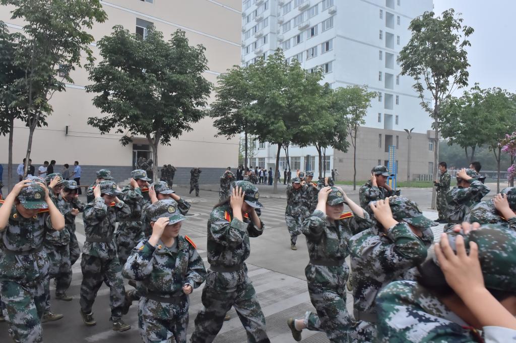 为了认真贯彻“安全第一、预防为主,综合治理”的工作方针,提高师生安全防范意识和应对地震、火灾等突发事件的应急处置能力,914日下午,我院在南校区举行了新生突发事件应急疏散及救援演练活动。南校区全体新生、军训教官、各分院辅导员、学院义务救援队队员、学院义务消防队队员、学院医院医护人员、杨凌示范区医院急救人员、杨凌消防特勤中队官兵等共计2000余人参加了演练活动。