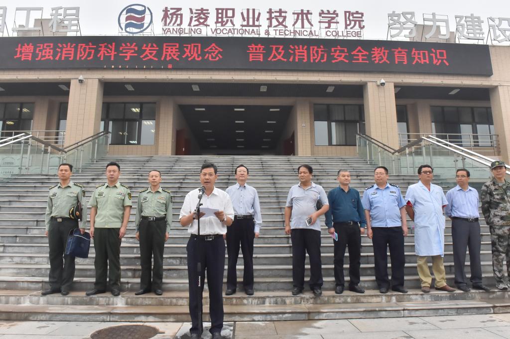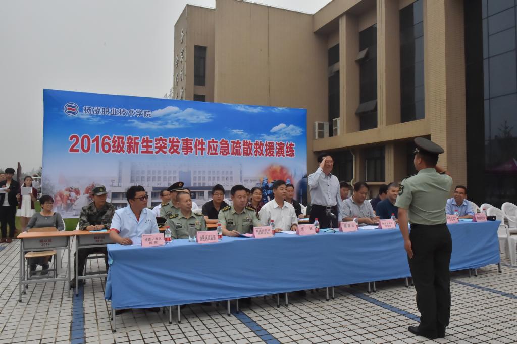 杨凌示范区公安局、消防支队、应急办、安监局、医院,杨陵区人武部、西北农林科技大学保卫处以及学院领导,各分院(部)院长(主任)、党总支书记,各处室(中心)负责人,各分院学工办主任、西、北校区新生代表现场观摩了演练活动。