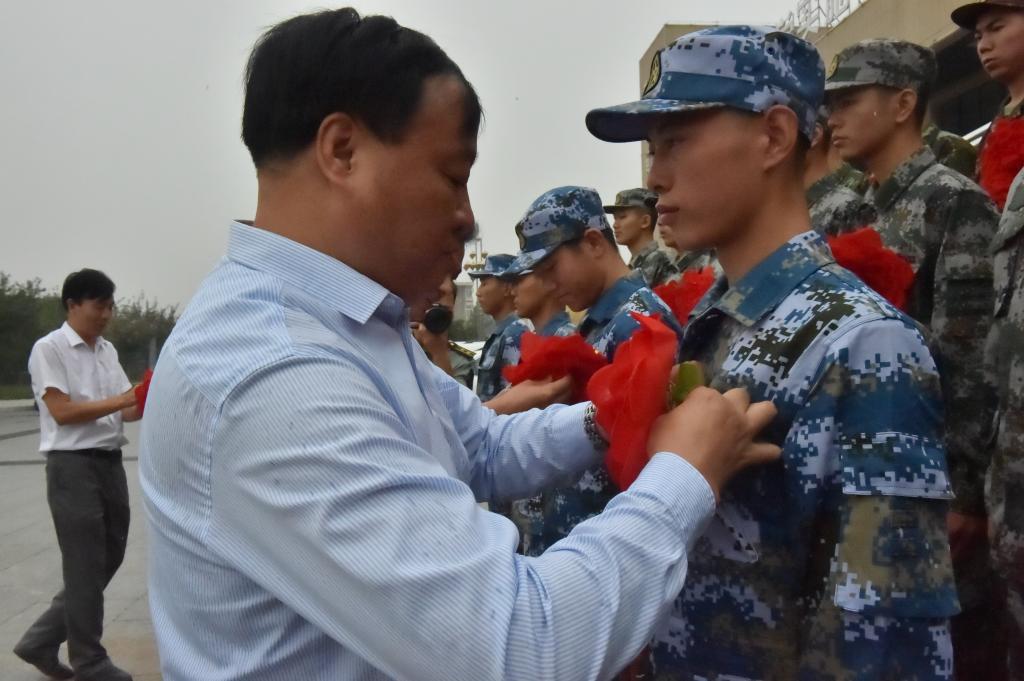 王周锁院长为入伍学生佩戴大红花