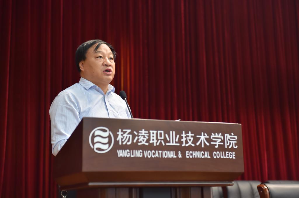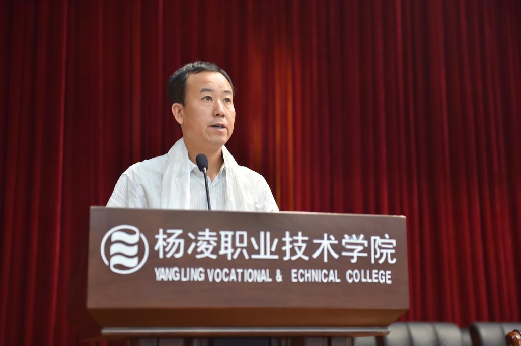 杨凌职业技术学院党委副书记、院长王周锁讲话。他指出,举办青海玉树水利订单班,为保护三江源培养高素质专业人才是履行社会责任和国家使命的重要体现,既有落实国家战略,促进生态涵养区全面小康、可持续发展的政治意义,更有支持玉树州紧缺人才培养、服务三江流域经济发展、促进人文生态平衡的历史意义。他要求玉树水利订单班学生,珍惜机会、认真学习、不负重托。一要加强沟通,尽快适应。二要遵守纪律,安心学习。三要知恩图报,不辱使命。
