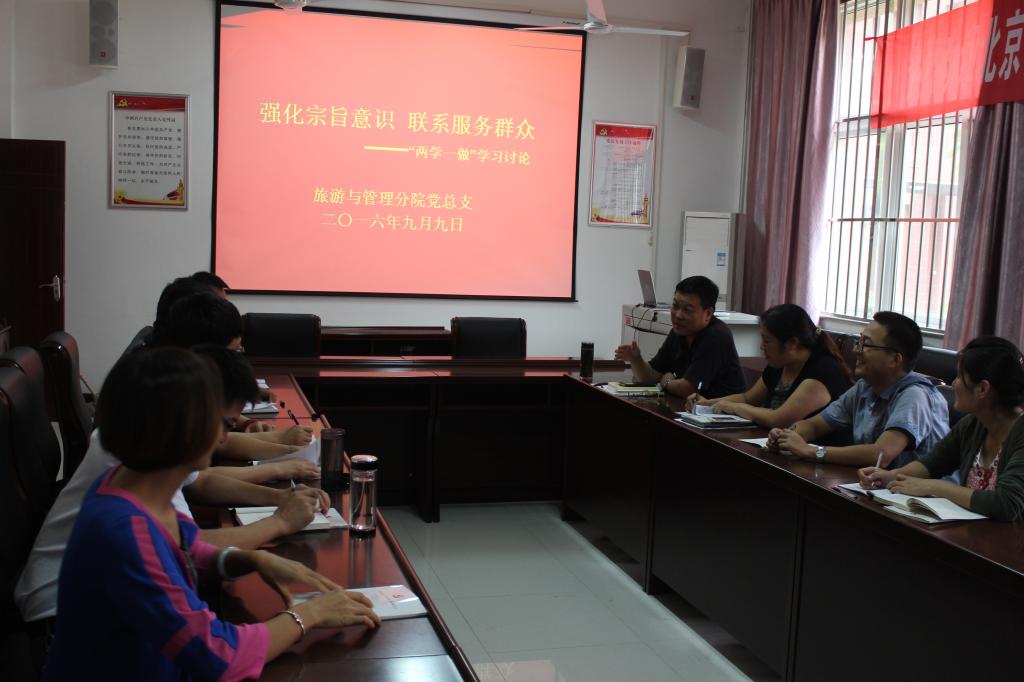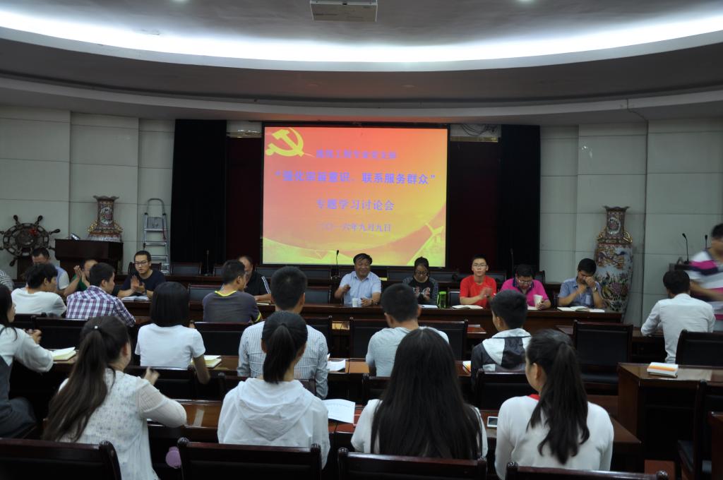 根据学院《在全院党员中开展“学党章党规、学系列讲话,做合格党员”学习教育实施方案》的安排,9月9日下午,各党总支、党支部的全体党员开展了以“强化宗旨意识、联系服务群众”为专题的学习讨论。学院领导分别以普通党员的身份参加了所在支部的学习讨论。