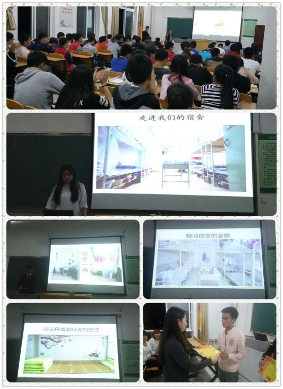 ——动物工程分院举行温馨寝室设计大赛。5月27日,动物工程分院以“创建温馨寝室,争做文明学生”为主题的温馨寝室设计大赛在北校区行知楼举行。伴随着背景音乐,15个宿舍代表通过ppt展示了自己寝室的风采,一个个寝室内窗明几净,物品摆放整齐,床铺干净整洁,被子是军训时的“豆腐块”,物品也是“一条线”,墙壁上一幅幅书墨丹青的装扮,散落着五彩手工折纸的点缀,干净、整洁、温馨的寝室呈现在了大家面前。