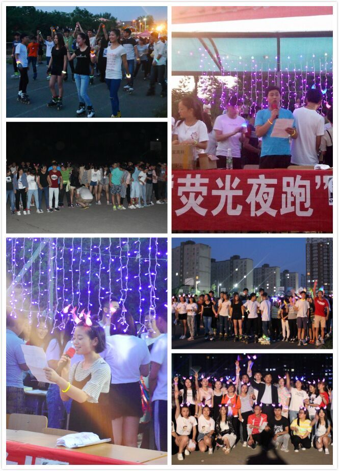 活动现场,五颜六色的荧光环、荧光贴、牛角灯与夜色交相辉映,前来参与夜跑的600多名师生热情高涨,大家齐心协力、互相配合完成了各个环节的活动,尽情享受荧光夜跑带来的欢乐。