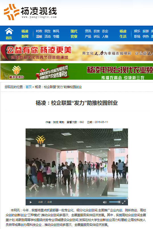 5月11日,杨凌电视台报道了我院学生创业工作。(详情进入)