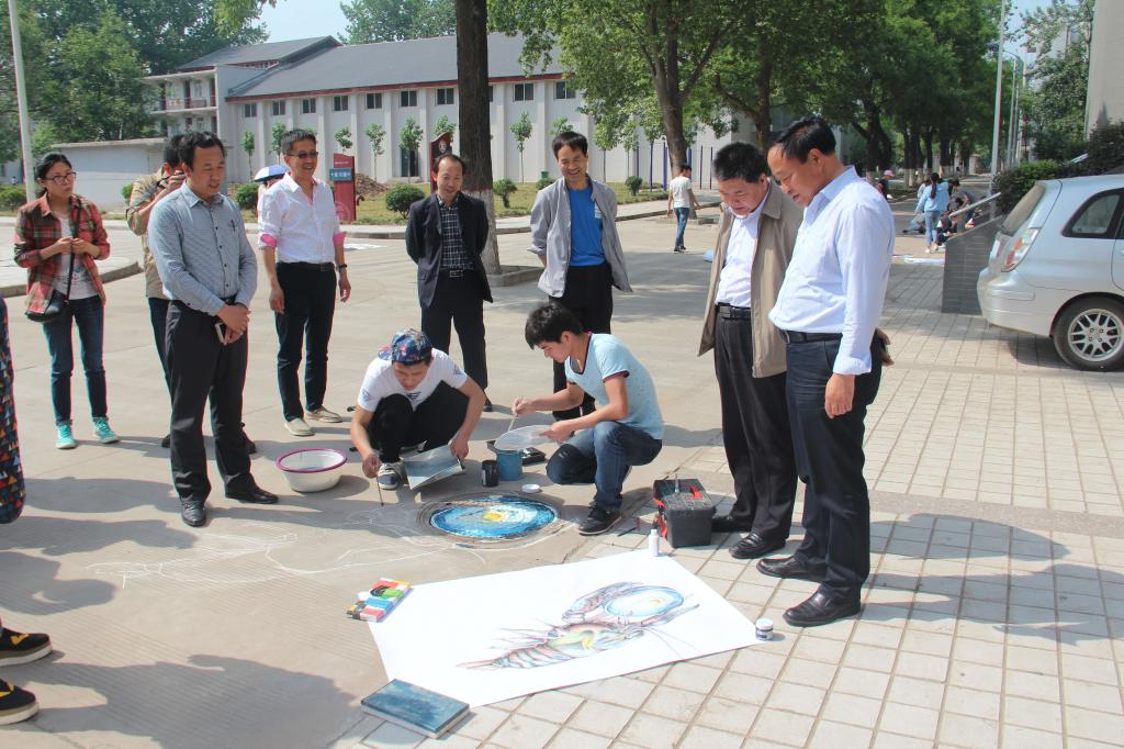 近日,生态环境工程分院在西校区乐农楼和食堂周围部分路段的井盖上举行了井盖涂鸦创意大赛。大赛期间,院长王周锁、副院长张永良来到现场,参观指导大赛进展情况。