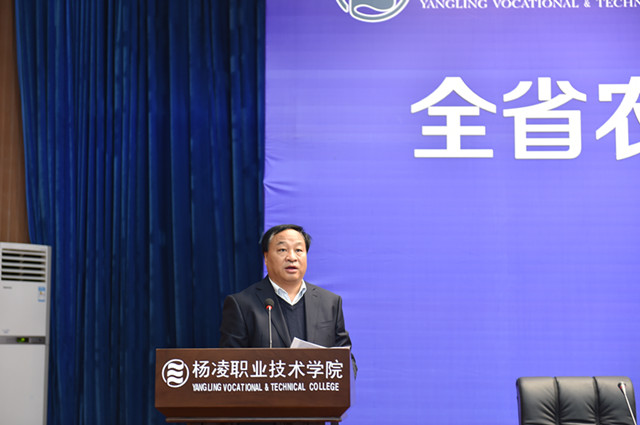 为进一步促进全省农业产业化龙头企业转型升级,构建产学研一体化的特色现代农业支撑体系,进一步推进农业产业化企业与杨凌职业技术学院的校企深度合作,11月20日,由省农业厅和我院共同主办的全省农业产业化校企合作推进会在我院举行。省农业厅副厅长高爱平,省教育厅副厅长王紫贵,示范区管委会主任助理董胜利,学院党委书记赵曼出席并致辞,学院党委副书记、院长王周锁主持推进会。
