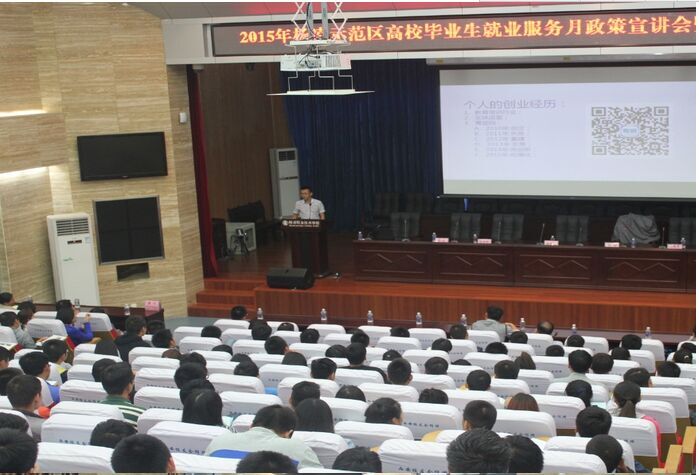 大学生创业明星,杨凌罗文网络科技公司(青团网)创始人郑红勇、杨凌挪亚环保科技有限公司总经理杨龙为2016届毕业生代表作报告,宣讲自己的创业经历,分享了成功创业经验,讲解了创业过程中的难点和对策。示范区人事劳动局相关业务负责同志向毕业生详细讲解了示范区在创业培训、贴息贷款、孵化基地和创业补贴等方面的扶持政策。