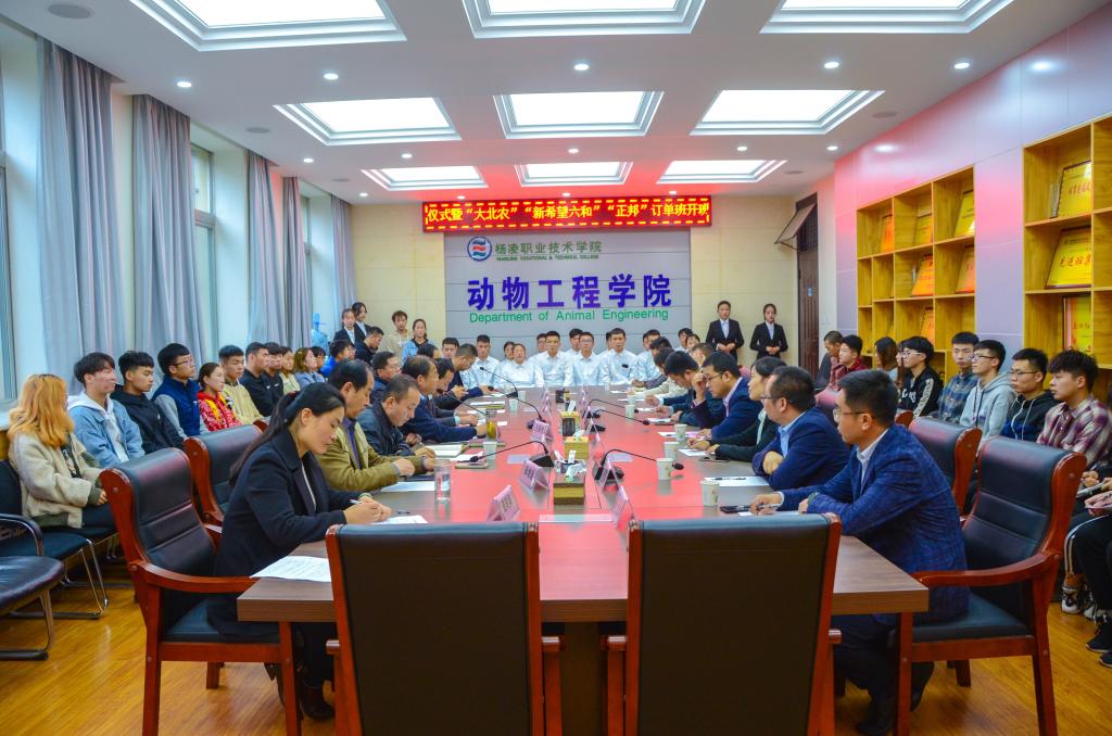 10月21日下午,动物工程分院举行“大北农班”、“新希望六和班”、“正邦班”订单班开班仪式。我院副院长张永良、大北农集团陕西区总经理宋安石、新六养猪事业部人力资源负责人杨骞、江西正邦集团农牧事业部人资总监曾小荣以及动物工程分院主要负责人、订单班代表共60余人参加了开班仪式。