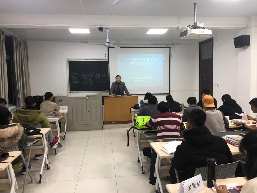 1月7日晚,国际学院在西校区林和楼召开了留学生期末考试复习动员暨寒假安全教育会。